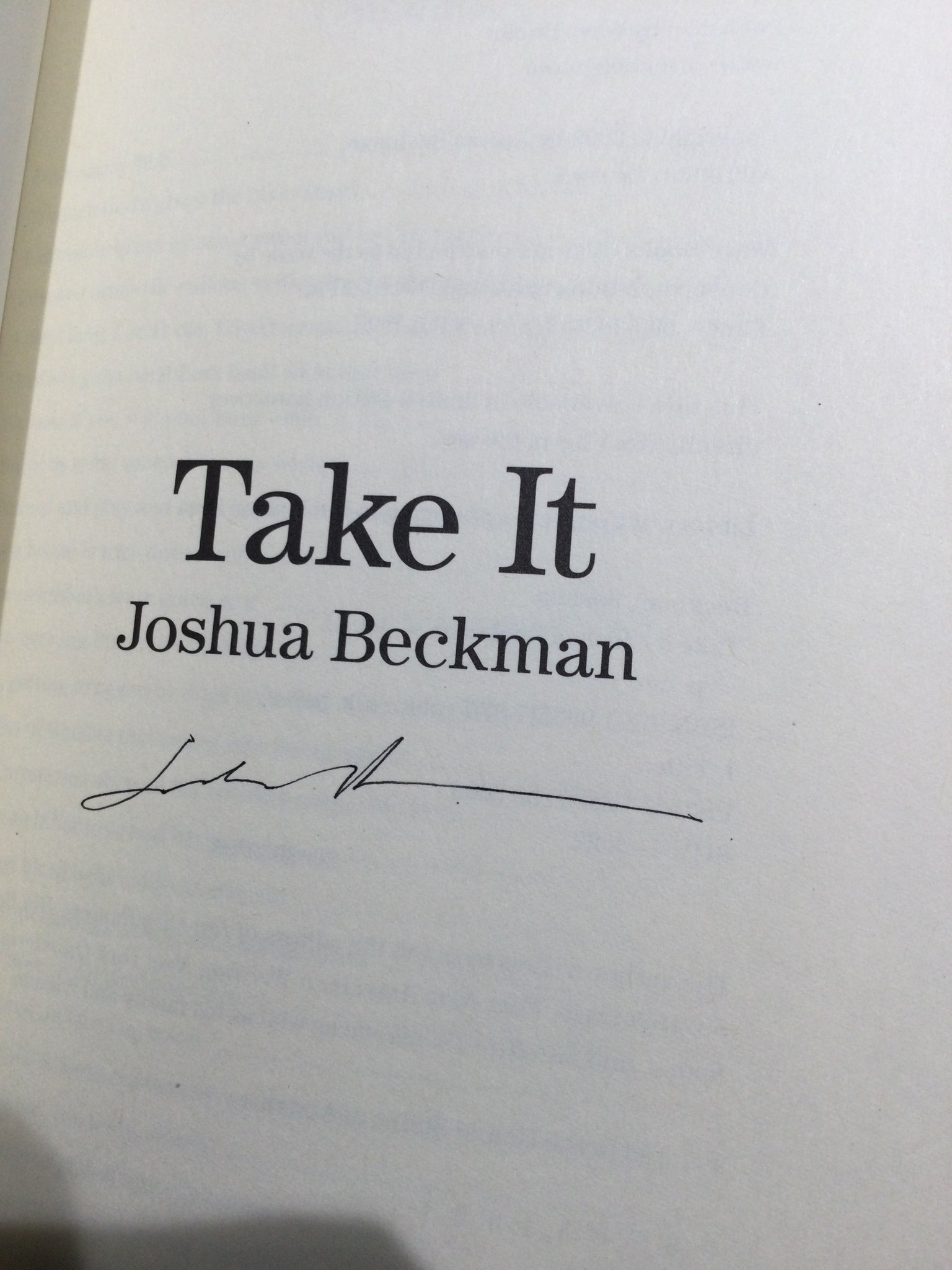 Take It, by Joshua Beckman (used paperback, ISBN 9781933517377, Wave Books, 2009)