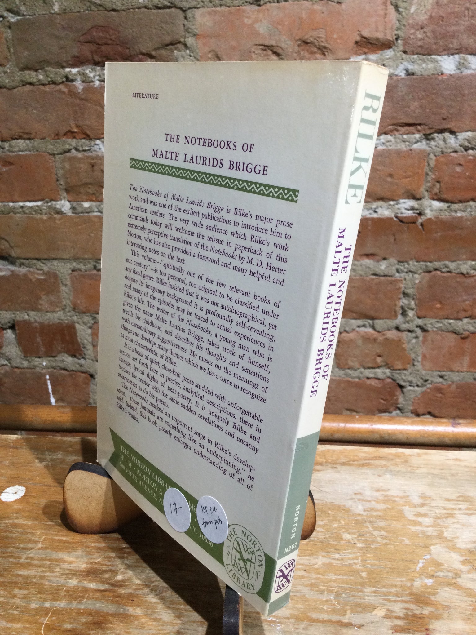 The Notebooks of Malte Laurids Brigge, by Rainer Maria Rilke (used paperback, ISBN 0393002675, Norton, 1964)
