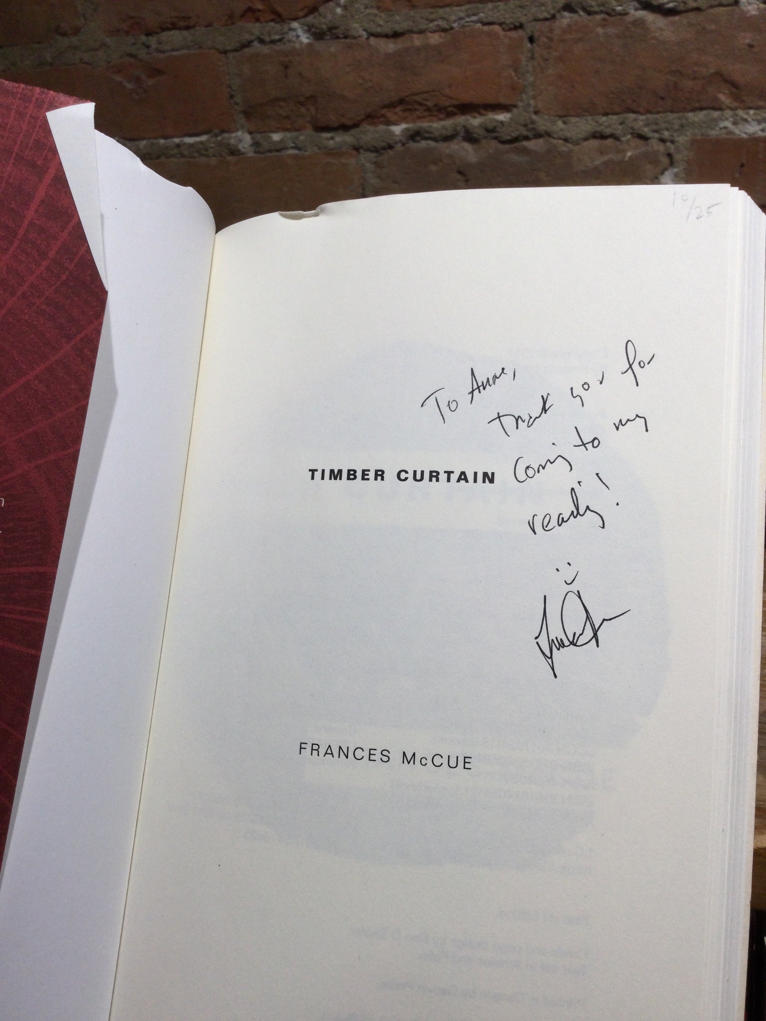 Timber Curtain, by Frances McCue (used paperback, ISBN 9781634059121, Chin Music, 2017)