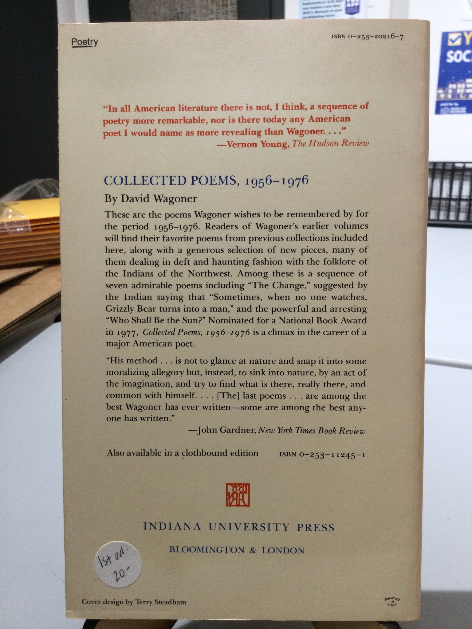 Collected Poems 1956-1976, by David Wagoner (used paperback, ISBN 0253202167, Indiana University Press, 1978)