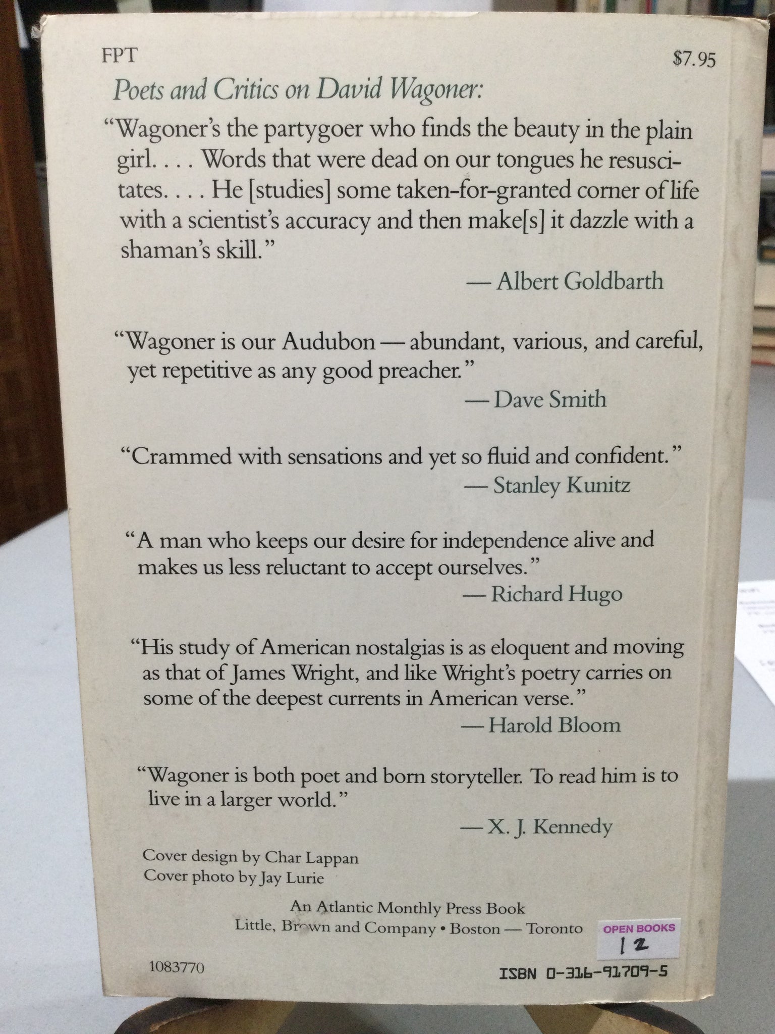 First Light, by David Wagoner (used paperback, ISBN 0316917095, Atlantic - Little, Brown, 1983)