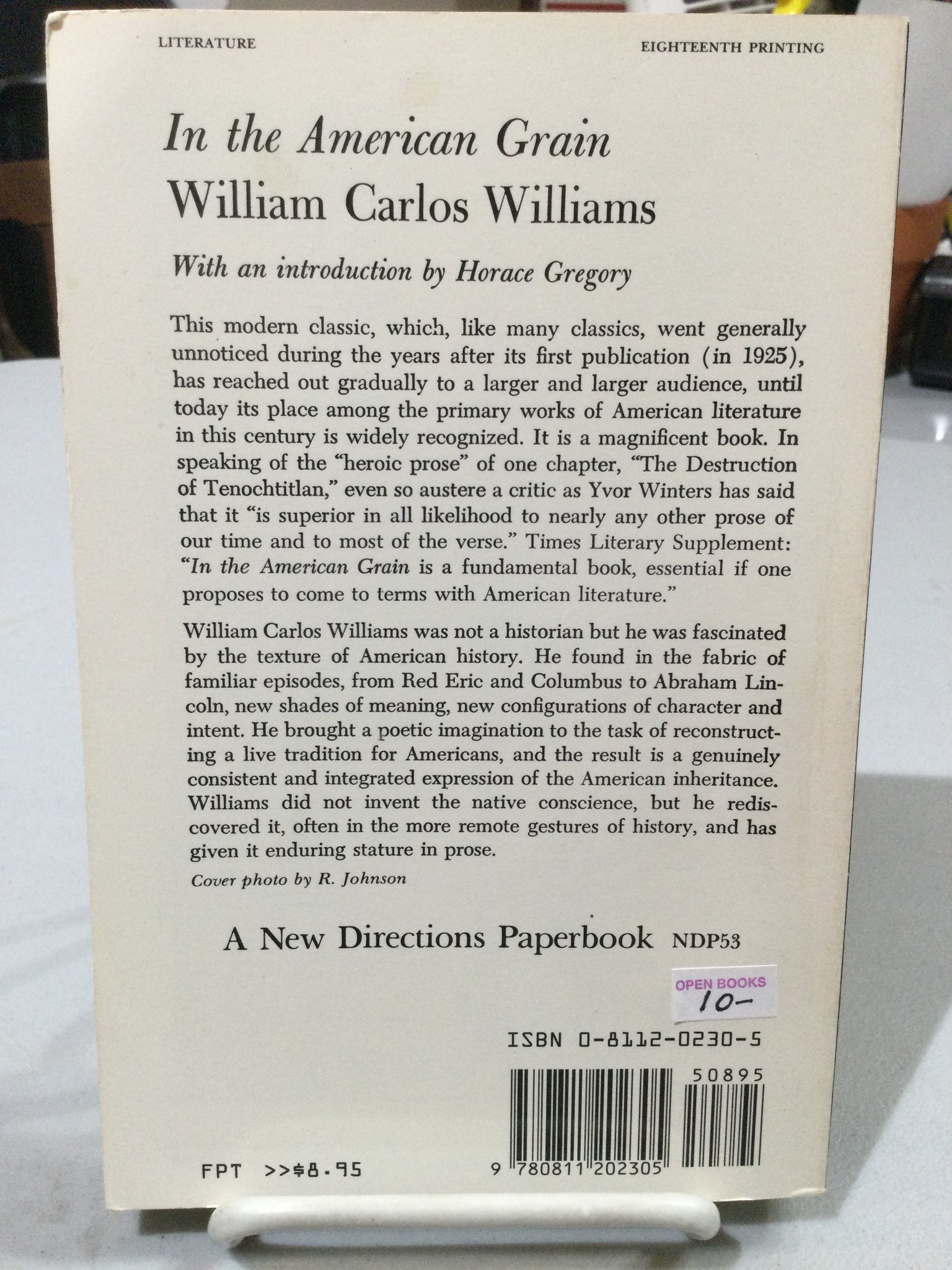 In the American Grain, by William Carlos Williams (used paperback, ISBN 0811202305, New Directions, 1956)