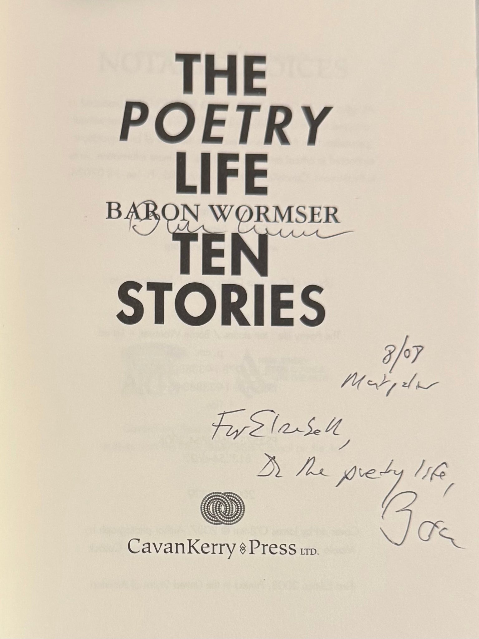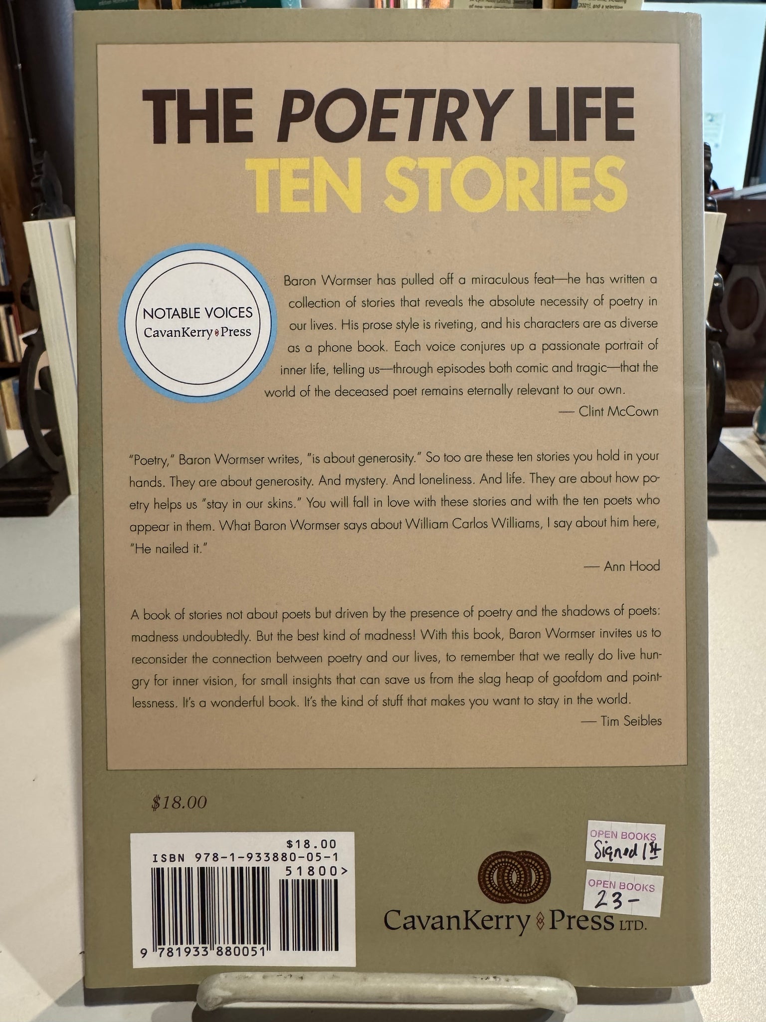 The Poetry Life: Ten Stories by Baron Wormser (used paperback, ISBN 9781933880051, CavanKerry Press, 2008)