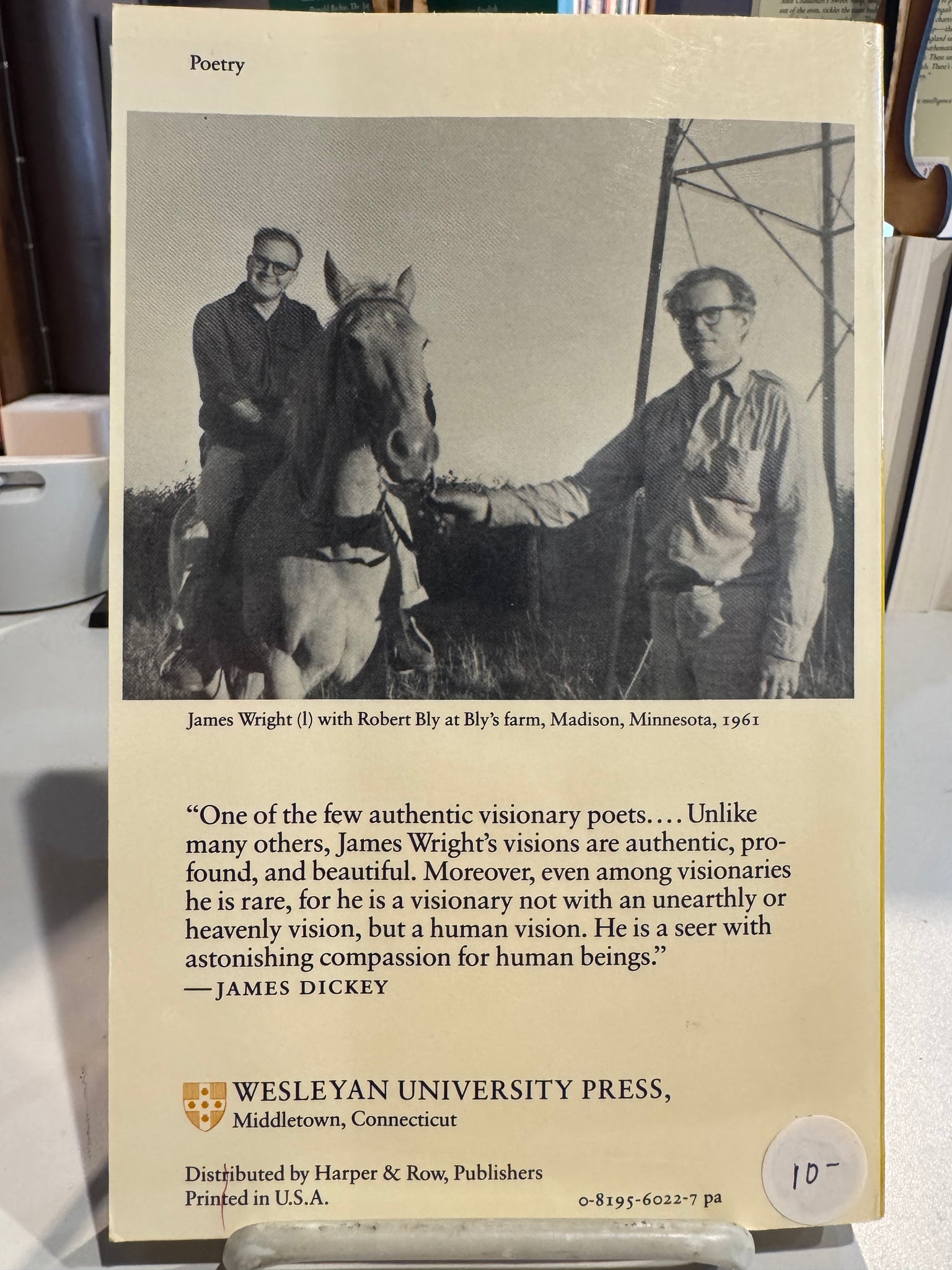 Collected Poems by James Wright (used paperback, ISBN 0819560227, Wesleyan University Press, 1986)