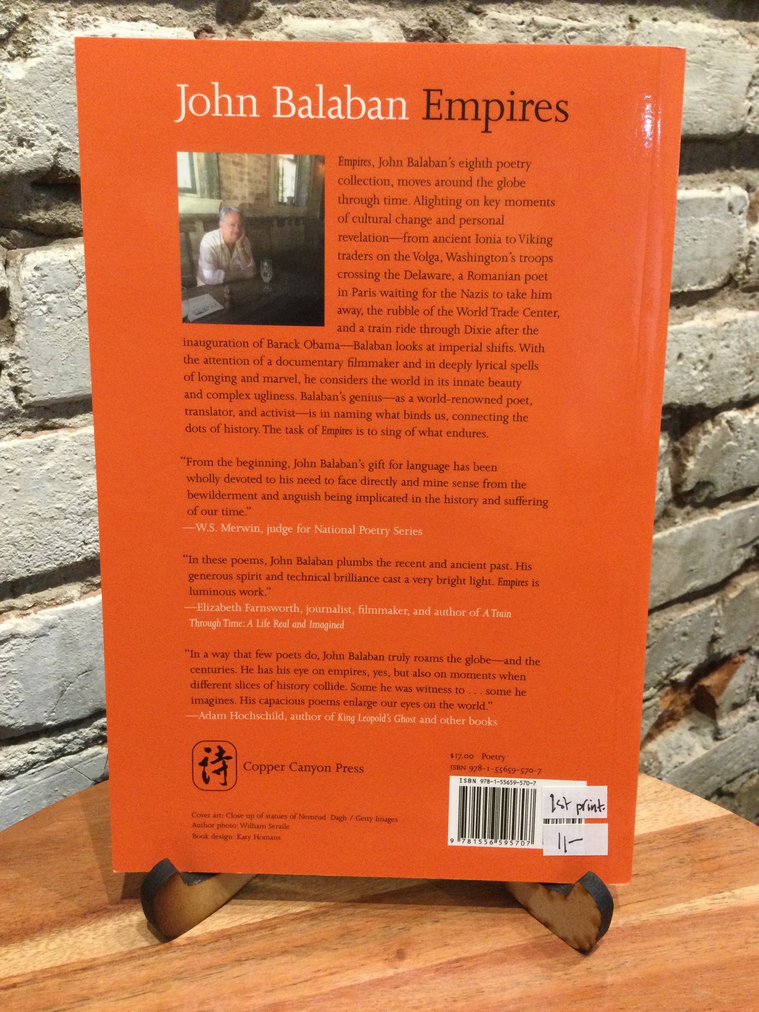 Empires, by John Balaban (used paperback, ISBN 9781556595707, Copper Canyon, 2019)