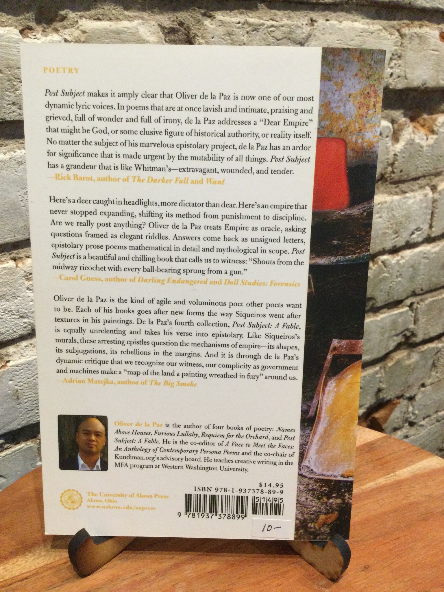 Post Subject: A Fable, by Oliver de la Paz (used paperback, ISBN 9781937378899, University of Akron, 2014)