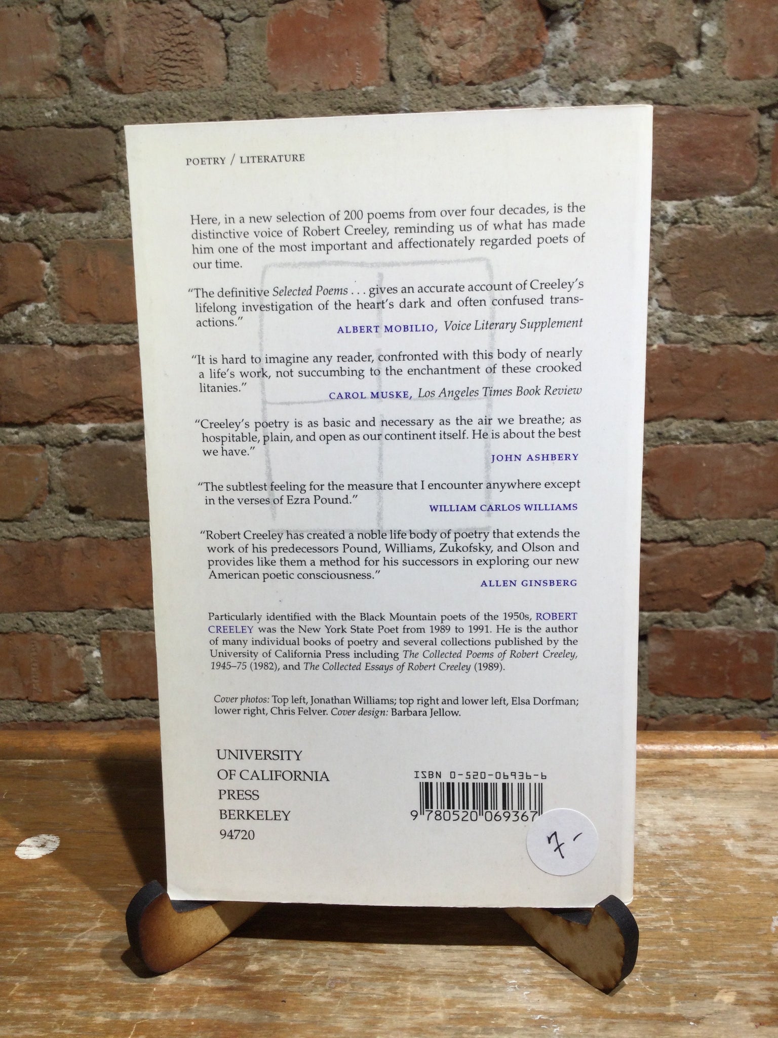 Selected Poems, by Robert Creeley (used paperback, ISBN 0520069366, University of California Berkeley, 1991)