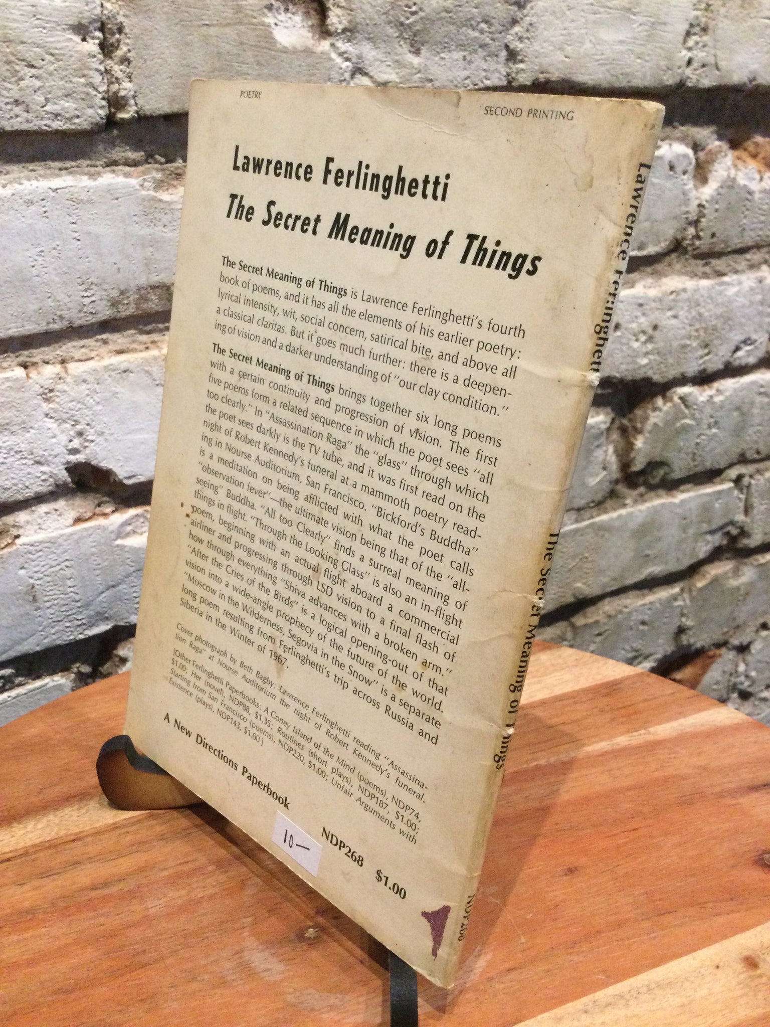 The Secret Meaning of Things, by Lawrence Ferlinghetti (used paperback, New Directions, 1968)